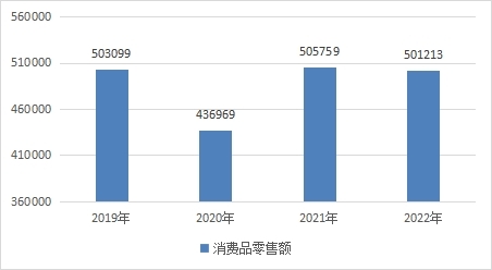 圖7 2019年—2022年消費品零售額情況