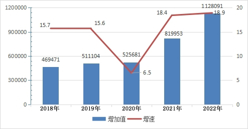 初步核算,2022年全區實現生產總值2032196萬元,比上年增長9.9%,其中,第一產業增加值完成126222萬元,比上年增長3.7%;第二產業增加值完成1235641萬元,比上年增長16.4%;第三產業(服務業)完成增加值670333萬元,比上年增長3.3%,人均地區生產總值為136824元,比上年增長10.7%。第一、第二、第三產業對全區生產總值增長的貢獻率分為:3.1%、82.9%、14.0%。三次產業結構的比為6.2:60.8:33.0。第一、第二、第三產業對經濟增長的拉動點分別為0.3%、8.2%和1.4%。