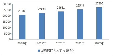 圖10 2018年—2022年城鎮居民人均可支配收入情況